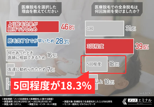 下記は医療脱毛での前進脱毛は何回施術を受けたのかの調査資料です。