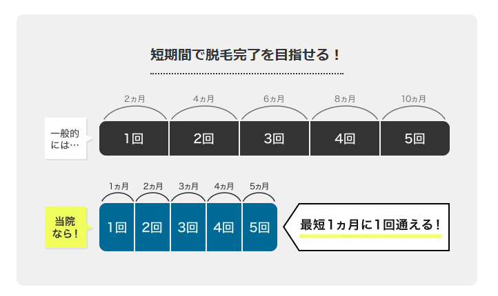特にヒゲやVIOなど濃くてしつこい毛に悩んでいる方にとっては、短期間でしっかり効果を実感しやすいという点が大きな魅力です。
