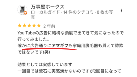 ここでは、GoogleマップやSNSに投稿されたリアルな口コミをもとに、良い評判と悪い評判の両面からメンズクリアのアマギフに関する実態を調査しました。