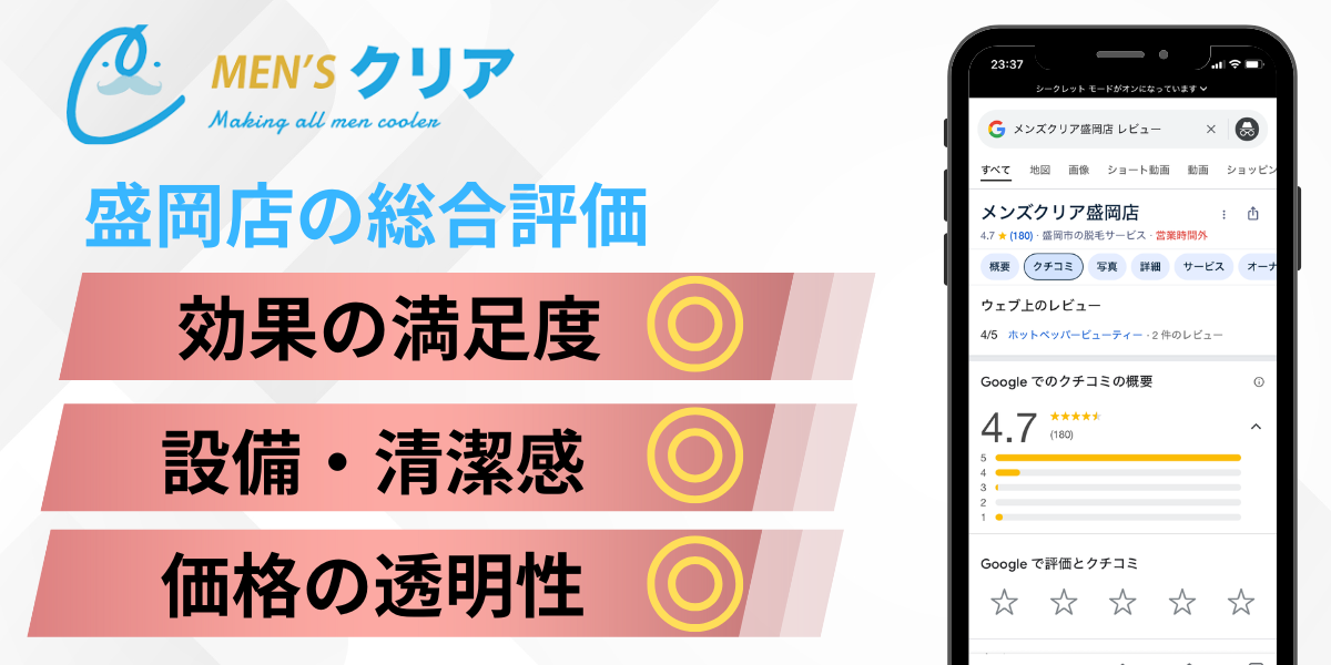メンズクリア盛岡店の総合評価★4.0!効果と清潔感で高評価